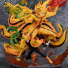 ✅ Thiết kế: Tái hiện Naruto trong trạng thái hợp nhất với Cửu Vĩ, với hiệu ứng năng lượng sống động.